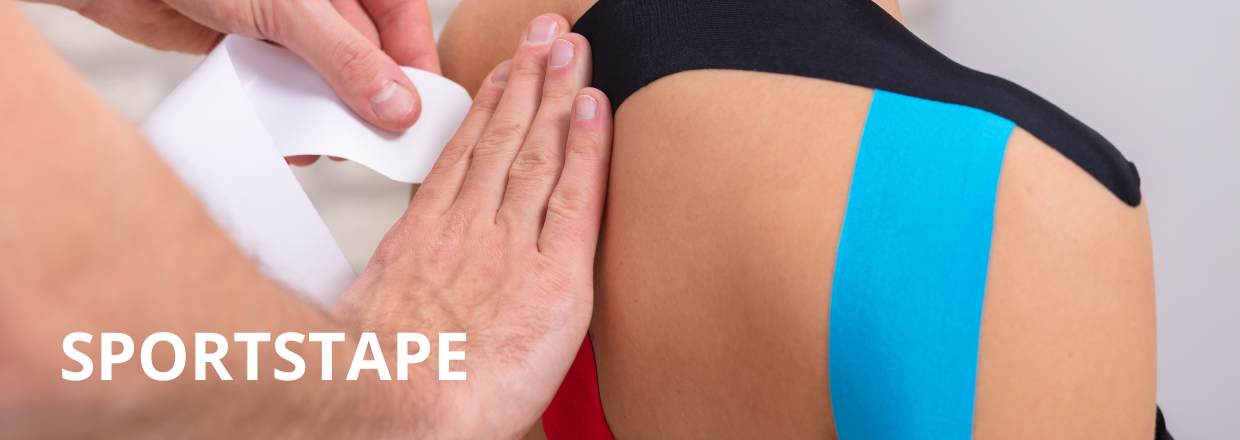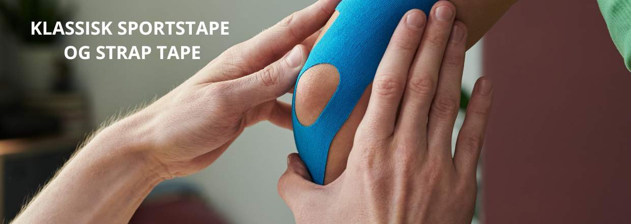 Her finder du både klassisk sportstape, strap tape, foam tape, fixing tape og strømpetape – alt samlet ét sted.