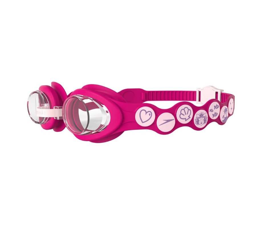 Den smarte trykknap bagpå gør det hurtigt og nemt at justere silikonestroppen, så svømmebrillerne kan tilpasses præcist til barnet. Speedo Infant Spot svømmebriller er latex- og PVC-fri og et oplagt valg til både svømmetræning, leg og vandtilvænning.