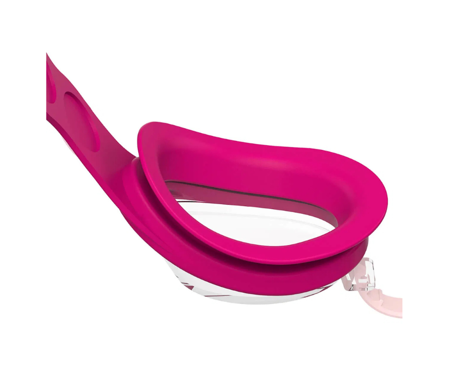De bløde silikonekanter og den justerbare næsebro sikrer et velsiddende og behageligt fit omkring barnets hoved – både i og over vandet.