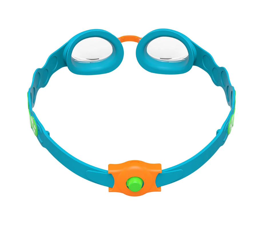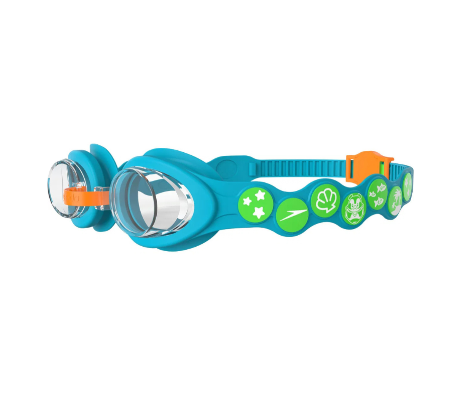 Den praktiske trykknap bagpå gør det hurtigt og nemt at justere silikonestroppen, så pasformen let kan tilpasses barnet. Speedo Infant Spot svømmebriller er latex- og PVC-fri og et oplagt valg til svømmetræning, leg og vandtilvænning.