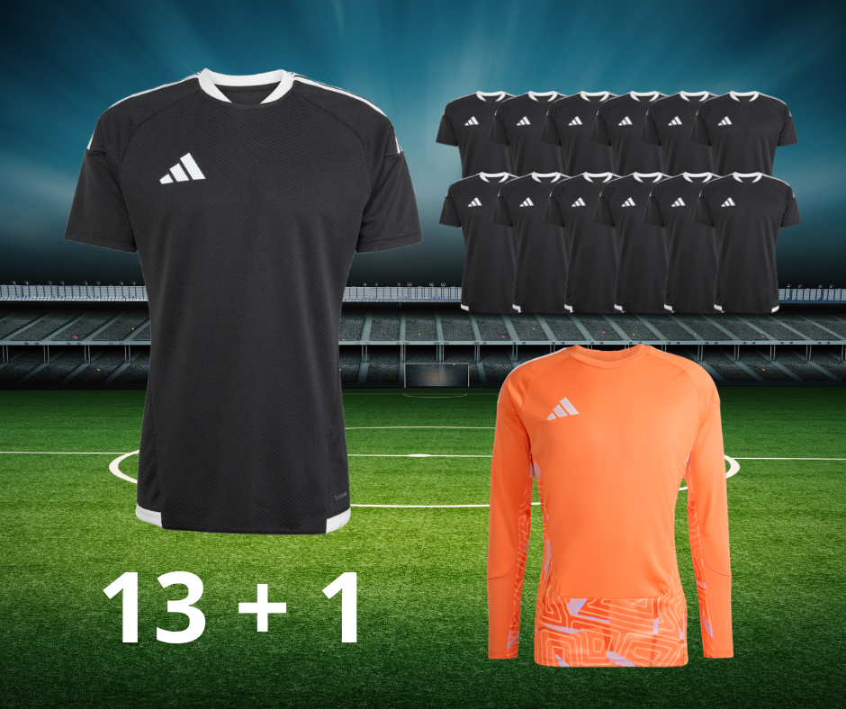 Komplet Spillersæt til Kamp - Adidas Tiro26 13+1 sort + orange målmandstrøje